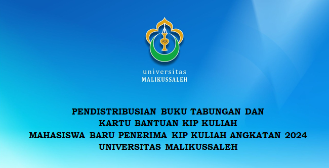 Disampaikan kepada mMahasiswa/i Baru Penerima Bantuan Kartu Indonesia Pintar Kuliah (KIP Kuliah) untuk Kuota Reguler dan Aspirasi Masyarakat Universitas Malikussaleh Angkatan 2024 untuk dapat mengambil buku tabungan dan ATM KIP Kuliah sesuai d...
