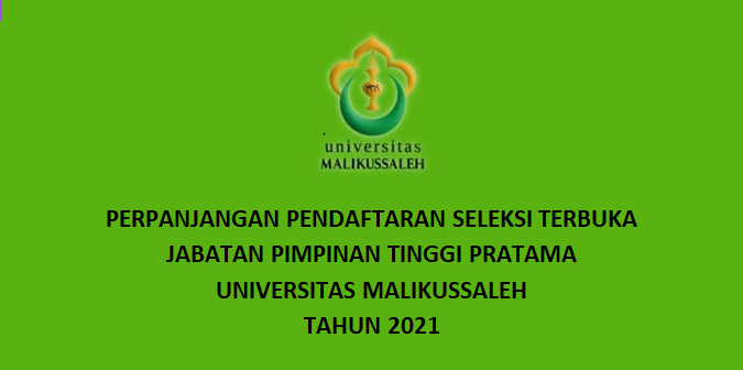Berdasarkan Keputusan Panitia Seleksi Terbuka Jabatan Pimpinan Tinggi Pratama Universitas Malikussaleh, setelah dilakukan perpanjangan pada tanggal 1 Februari 2021 sampai dengan 3 Februari 2021 dan seleksi administrasi pada tanggal 6 Febr...