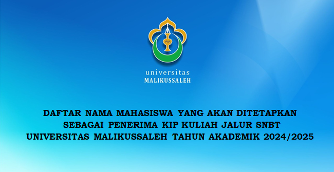 Sehubungan dengan telah selesainya tahapan seleksi bagi mahasiswa penerima KIP Kuliah Universitas Malikussaleh Tahun Akademik 2024/2025, maka dengan ini kami beritahukan sebagai berikut: