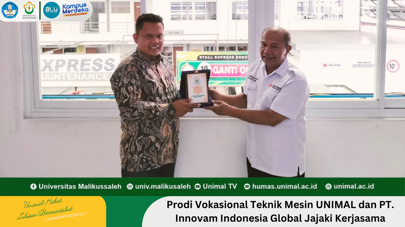Program Studi Pendidikan Vokasional Teknik Mesin Fakultas Keguruan dan Ilmu Pendidikan Universitas Malikussaleh dan PT. Innovam Indonesia Global Jajaki Kerjasama. Senin, 22 Juli 2024. Penjajakan kerja sama yang dilakukan untuk menyesuaikan keb...