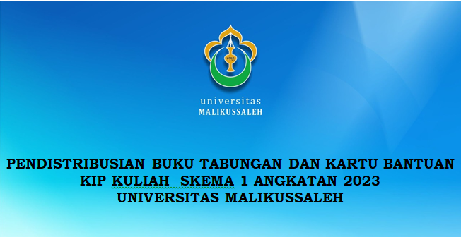 Disampaikan kepada mahasiswa/i penerima Bantuan Kartu Indonesia Pintar Kuliah (KIP Kuliah) Skema 1 untuk kuota Reguler dan aspirasi Masyarakat Universitas Malikussaleh angkatan 2023untuk dapat mengambil buku tabungan dan Kartu ATM KIP Kuliah sesuai dengan surat dari Bank BTN Syariah (terlampir). Pengambilan buku tabungan hanya untuk mahasiswa KIP Kuliah Skema 1 ( Pembiayaan Biaya hidup dan Biaya Pendidikan), sedangkan untuk mahasiswa penerima KIP Kuliah Skema 2 (Pembiayaan Biaya Pendidikan) tidak ada pembagian buku tabungan dan KIP Kuliah pengganti masih dalam proses.
