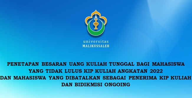 Sehubungan dengan telah selesainya proses penetapan KIP Kuliah angkatan 2022 dan proses evaluasi penerima KIP Kuliah dan Bidikmisi Ongoing Universitas Malikussaleh Tahun 2022, maka dengan ini kami beritahukan sebagai berikut: